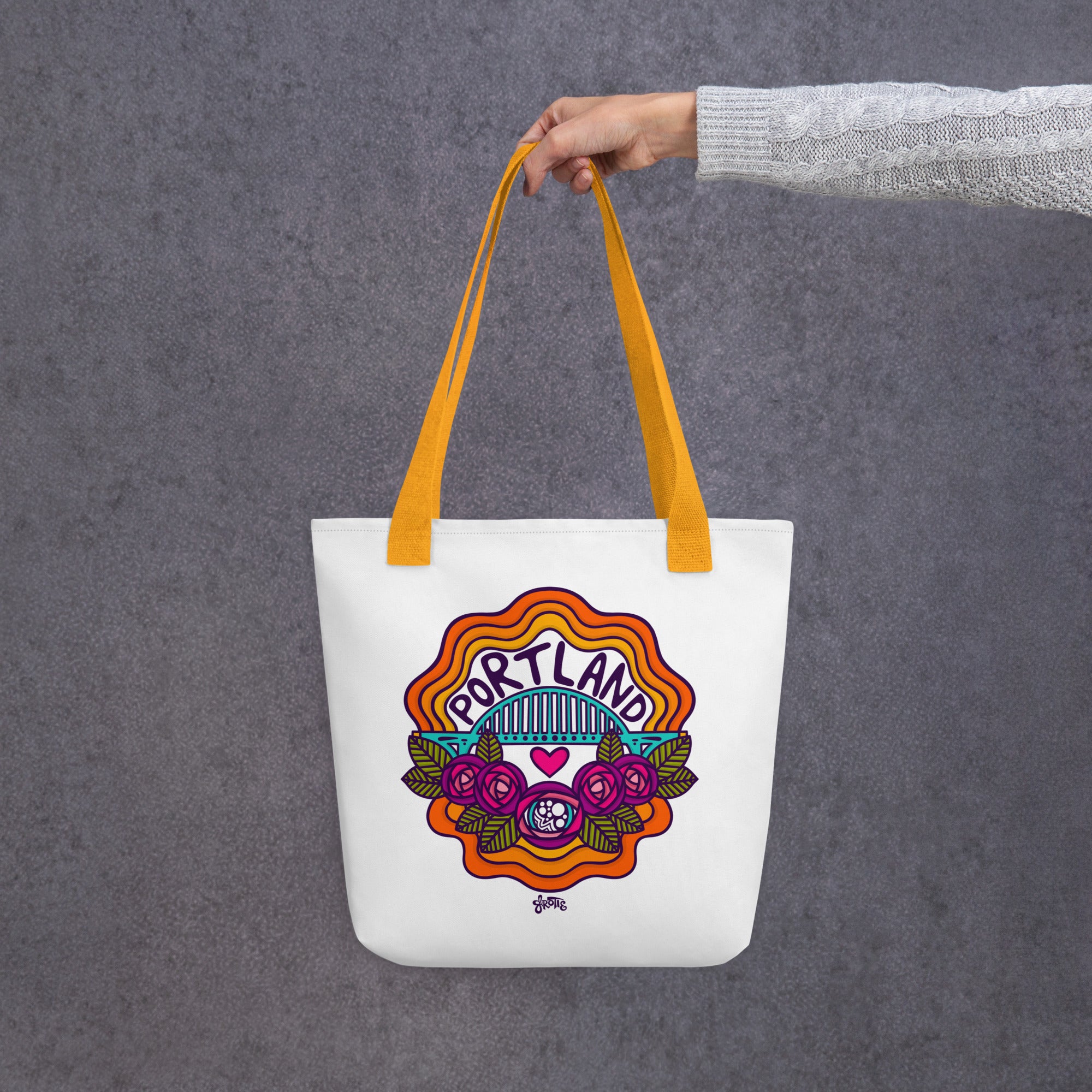 Celebrate the charm and beauty of Portland with this rose-inspired design that pays homage to the city’s iconic nickname, this tote is perfect for locals and visitors alike. Spacious, sturdy, and stylish, deal for carrying your everyday essentials while showing off your love for the City of Roses.